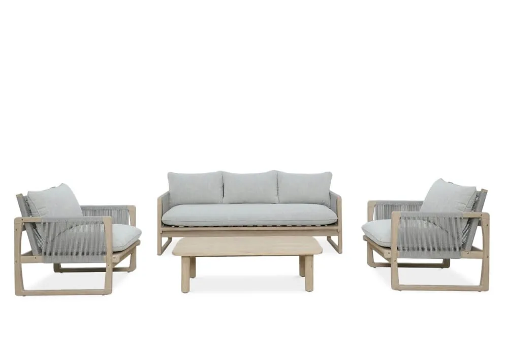 Materiál použitý na výrobu nábytku je unikátne akáciové drevo – nielen na pohľad krásne, ale aj mimoriadne trvácne a odolné voči poveternostným vplyvom. Ďalšou výhodou sú elegantné sivé vankúše, ktoré nielen dodajú šarm, ale zaistia aj pohodlie počas dlhých hodín relaxu vonku.