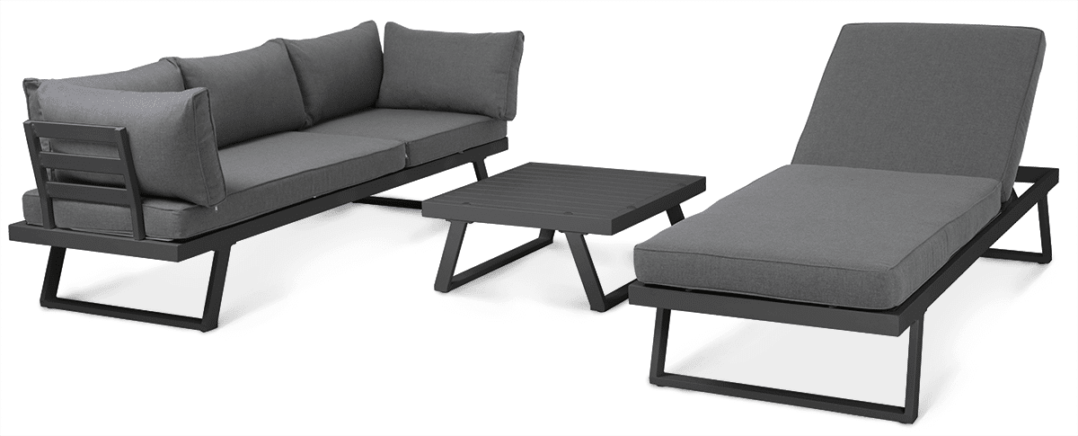 Rohové hliníkové záhradné sedenie Midway tmavosivé