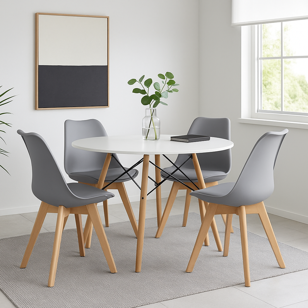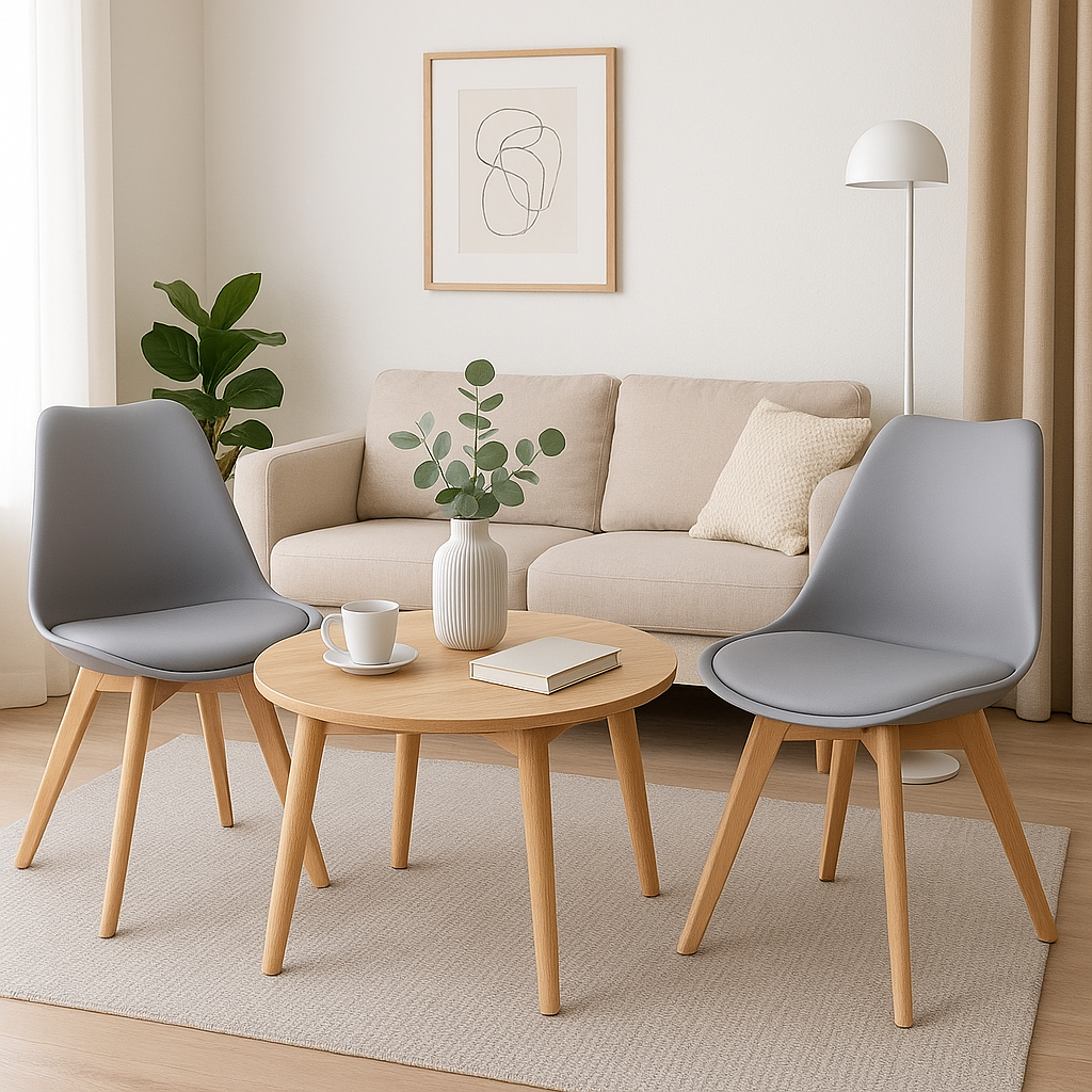 Sivá farba pôsobí elegantne a univerzálne, ľahko sa kombinuje s rôznymi štýlmi interiéru – od minimalistického po útulný domov. Tento set 2 ks je ideálny pre menšie priestory, ale skvelo doplní aj väčšie jedálne.