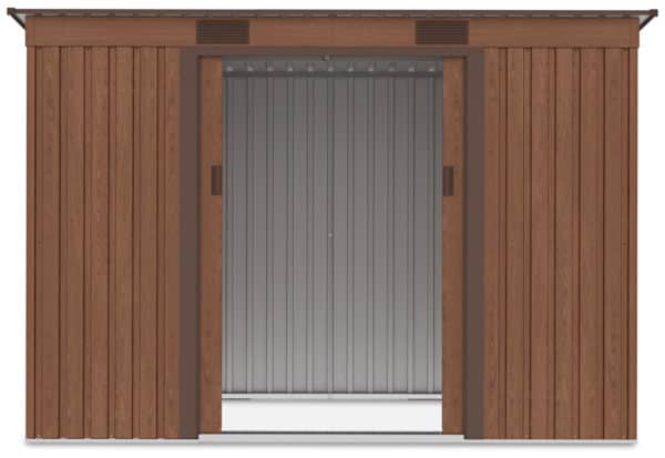 Už vás nebaví skladovať kosačku v garáži? Chceli by ste mať rýľ a hrable vždy po ruke? Alebo možno neustále hľadáte miesto pre záhradné doplnky? To znamená, že potrebujete kovový domček OREGON . Ide o konštrukciu, ktorá zaujme svojou jednoduchosťou, funkčnosťou a módnym, minimalistickým dizajnom. Výberom tohto prístrešku na náradie budete môcť pohodlne uložiť vybavenie, ktoré každodenne používate na starostlivosť o zeleň, záhradné dekorácie a aj menší nábytok. Zoznámte sa s domčekom OREGON, ktorý oceníte skôr, ako by ste čakali! Uložíte do neho kosačku, vyžínač, záhradnú hadicu, kvetináče či dekorácie – navyše jeho používanie bude veľmi pohodlné. Tento domček má dvojité široké posuvné dvere, vďaka čomu si k nemu ľahko prenesiete o niečo väčšie vybavenie. Uľahčí to aj praktický príjazd umiestnený hneď vedľa vchodu. Táto konštrukcia má šikmú strechu , aby na ňu nepadal sneh ani dážď – nebude tak zbytočne zaťažovaná. Okrem toho bolo postarané o efektné farby stien a strechy. Oku lahodiaci orieškový odtieň robí z domčeka OREGON ozdobu záhradnej úpravy. Mimoriadna starostlivosť bola venovaná tomu, aby bol tento model odolný a slúžil dlhé roky. Na tento účel sú jeho steny vyrobené z kvalitnej ocele. Proti hrdzaveniu, slnečnému žiareniu a vplyvom meniacich sa teplôt bola chránená pozinkovaním– to platí ako pre strešné panely a steny budovy, tak aj pre jej rám.