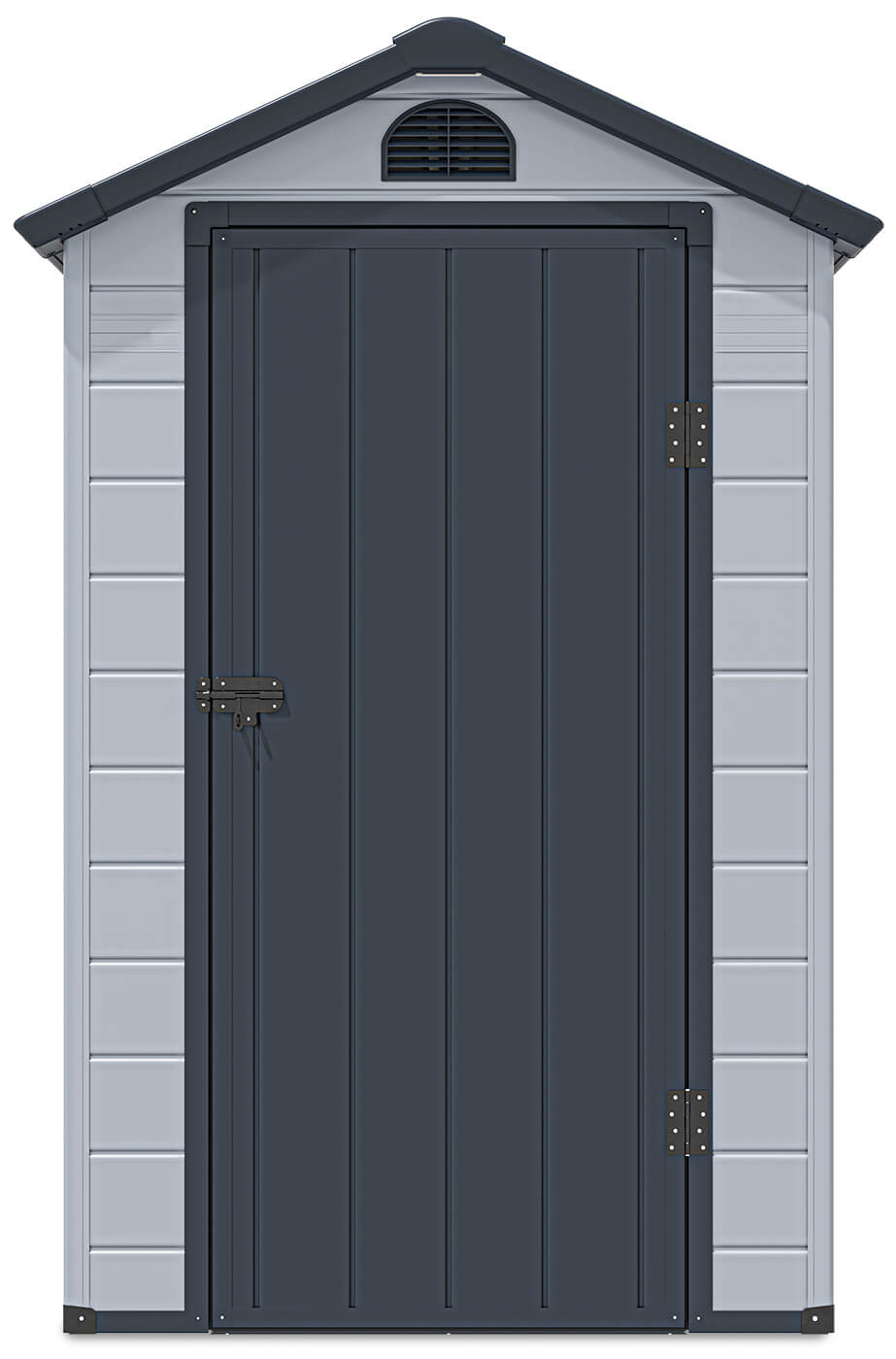 Záhradný domček VERMONT v svetlosivej farbe je výbornou alternatívou ku klasickým záhradným domčekom. Tento moderný domček poskytne ideálne podmienky na uloženie všetkého potrebného náradia, vybavenia a záhradného príslušenstva, ako sú kosačky, lopaty, vedrá. Model VERMONT bol vytvorený s ohľadom na udržanie aktuálnych trendov v interiérovom dizajne. Je vyrobený z polypropylénu – plastu, ktorý je skvelou alternatívou dreva. Okrem toho má domček oceľové profily na spevnenie konštrukcie. Vďaka použitým materiálom je mimoriadne trvácny a odolny voči nepriaznivým podmienkam a poveternostným vplyvom, akými sú: dážď, sneh, meniace sa teploty, UV žiarenie, vlhkosť. Na rozdiel od drevených prístreškov si nevyžaduje impregnáciu ani zložitú starostlivosť – na vyčistenie postačí klasická tlaková umývačka.