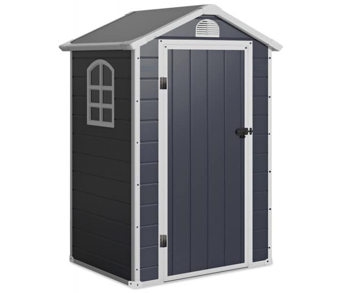 Záhradný domček VERMONT v tmavosivej farbe je výbornou alternatívou ku klasickým záhradným domčekom. Tento moderný domček poskytne ideálne podmienky na uloženie všetkého potrebného náradia, vybavenia a záhradného príslušenstva, ako sú kosačky, lopaty, vedrá. Model VERMONT bol vytvorený s ohľadom na udržanie aktuálnych trendov v interiérovom dizajne. Je vyrobený z polypropylénu – plastu, ktorý je skvelou alternatívou dreva. Okrem toho má domček oceľové profily na spevnenie konštrukcie. Vďaka použitým materiálom je mimoriadne trvácny a odolný voči nepriaznivým podmienkam a poveternostným vplyvom, akými sú: dážď, sneh, meniace sa teploty, UV žiarenie, vlhkosť. Na rozdiel od drevených prístreškov si nevyžaduje impregnáciu ani zložitú starostlivosť – na vyčistenie postačí klasická tlaková umývačka. Záhradný domček je vybavený ventilačným panelom, ktorý zaisťuje dostatočnú cirkuláciu vzduchu vo vnútri objektu, vďaka čomu vo vnútri nevzniká vlhkosť, ktorá by mohla mať vplyv na hrdzavenie kovových prvkov. Šikmá strecha chráni konštrukciu pred snehom a dažďovou vodou, ktorá sa na nej hromadí. Kvalita spracovania a univerzálny dizajn zaručujú odolnosť na roky a možnosť prispôsobenia takmer každej záhradnej úprave. Záhradný domček si vyžaduje svojpomocnú montáž. Žiaden strach! Súprava obsahuje jasný a čitateľný návod a montáž si nevyžaduje použitie špeciálneho náradia.