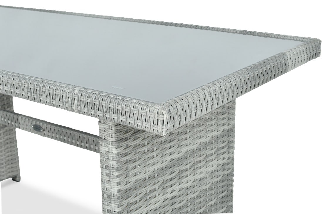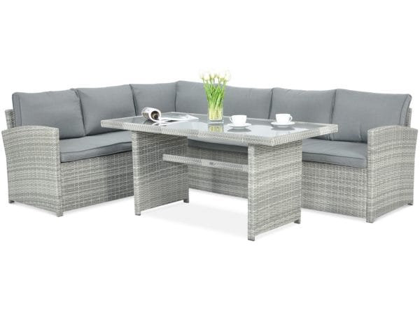 Atraktívna súprava nábytku z technoratanu, pozostávajúca z 5 prvkov. Záhradná jedálenská súprava obsahuje 2 taburetky, stôl a rohovú sedačku Salo. Ten možno ľahko rozdeliť na dve pohodlné 3-miestne pohovky. Všetok záhradný nábytok v súprave s rohovou pohovkou Salo je vyrobený zo šedého polyratanu, ktorý tesne pokrýva oceľový rám. Použitie kvalitných materiálov dodáva nábytku trvácnosť, odolnosť a klasický dizajn. Funkčný stolík, pohodlné taburetky a veľký technoratanový roh robia zo sedacej súpravy Salo pre vás skvelú voľbu. Bez ohľadu na to, či hľadáte nový záhradný nábytok alebo zariadenie do niektorej z izieb. Rýchlo zistíte, že kúpa Salo sedenia s taburetkami a stolíkom je to správne rozhodnutie! Len máloktorá z polyratanových záhradných zostáv zaručuje takú vysokú kvalitu za rovnako dostupnú cenu. Objednajte si rohové záhradné sedenie, taburetky a záhradný stôl Salo a ďalšie roky nenavštívite obchody s nábytkom! Využite jedinečnú ponuku a objednajte ešte dnes.